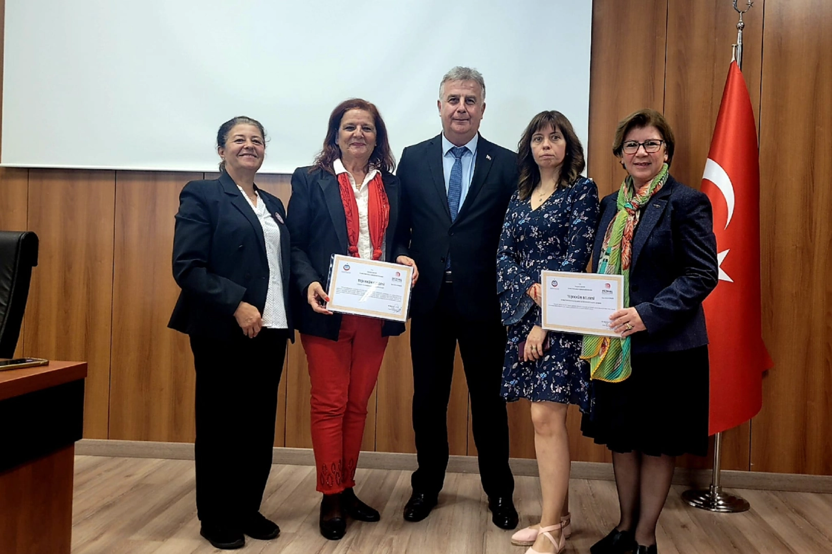 Teşekkür belgesini Yalova İl Sivil Toplumla İlişkiler Müdürü Arif Atbaş, Üniversiteli Kadınlar Derneği Yalova Şube Başkanı Leyla Keğaz’a takdim etti.