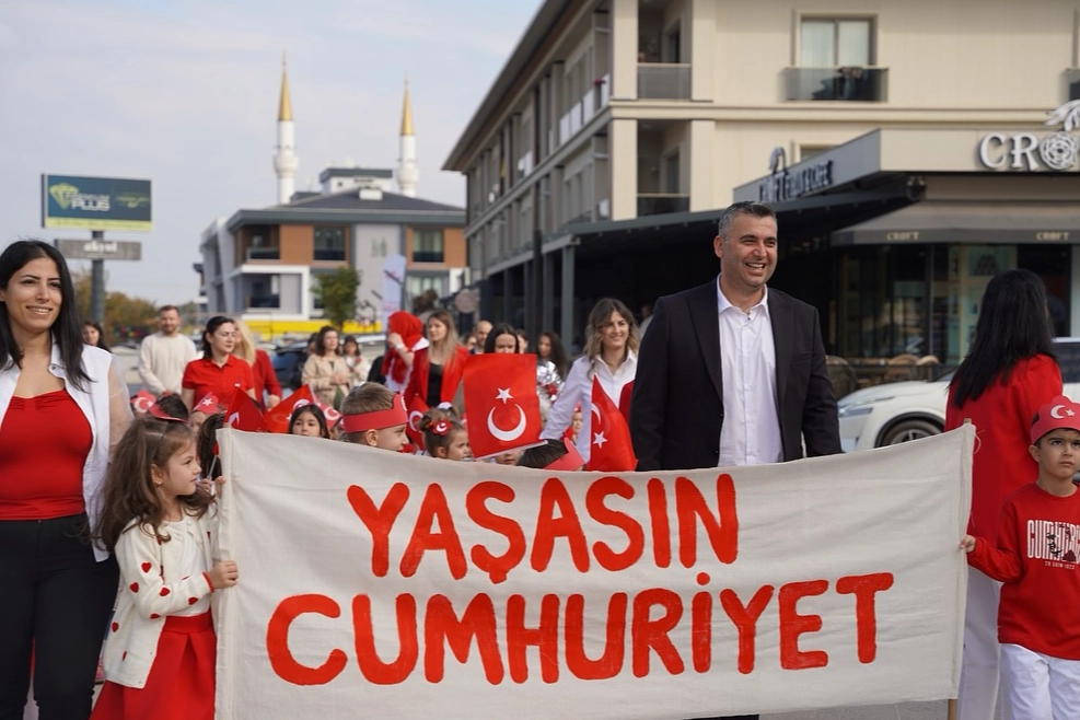 Özel Merih Anaokulu öğrencileri ve öğretmenleri tarafından 29 Ekim Cumhuriyet Bayramı 101. Yılı kutlamaları kapsamında tören düzenlendi. Türk bayrağının renkleri olan kırmızı ve beyaz temalı kutlama programı kortej ile başladı. “YAŞASIN CUMHURİYET!” pankartlı kutlama programına katılan anaokulu öğrencilerinin Mustafa Kemal Atatürk ve Cumhuriyet yazılı kombinleri de dikkat çekti.