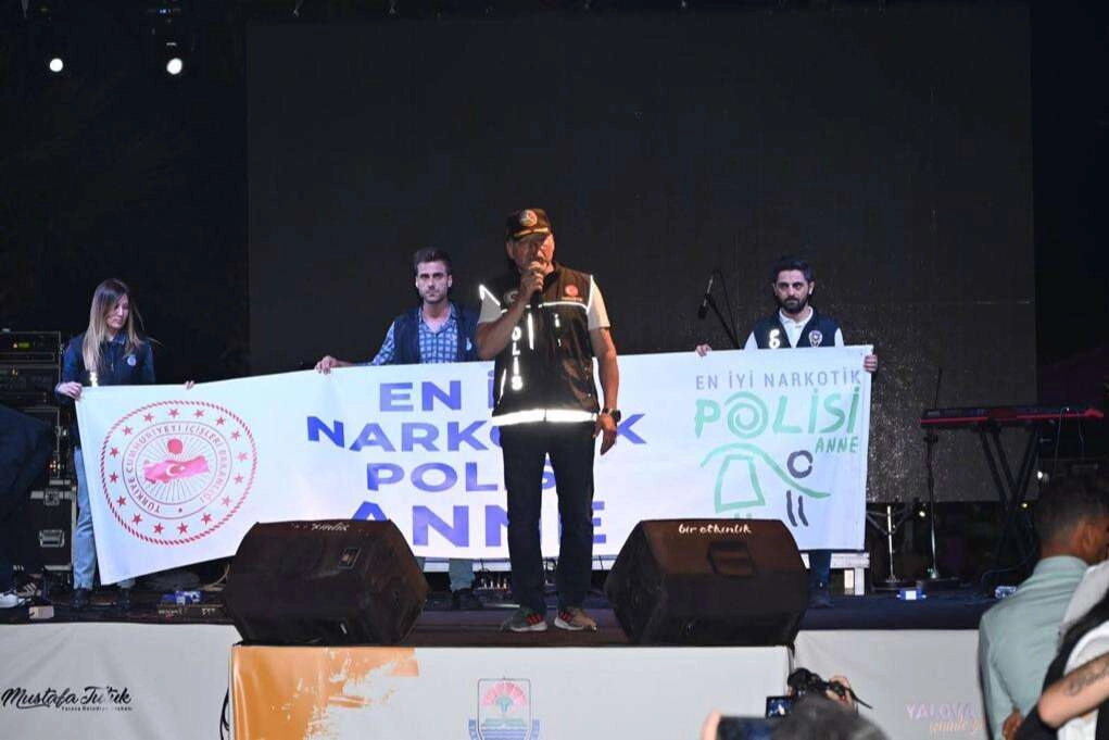 Festivalde sahneye çıkan görevliler, ‘Bağımlılık Yapıcı Maddelere Hayır’, ‘UYUMA Geleceğine Sahip Çık’, ‘Ya Çaresizsiniz ya da ÇareSİZsiniz’, ‘En İyi Narkotik Polisi Anne’ gibi mesajlar içeren pankartlar eşliğinde izleyicilere hitap etti. Ayrıca, ilimiz özelinde Narkotik Suçlarla Şube Müdürlüğünce düzenlenecek olan sosyal içerikli projelerden bahsederek, genç nesilleri hedef alan uyuşturucu maddelere karşı, “Yalova Uyuşturucuya Hayır Diyor” mesajı verildi.