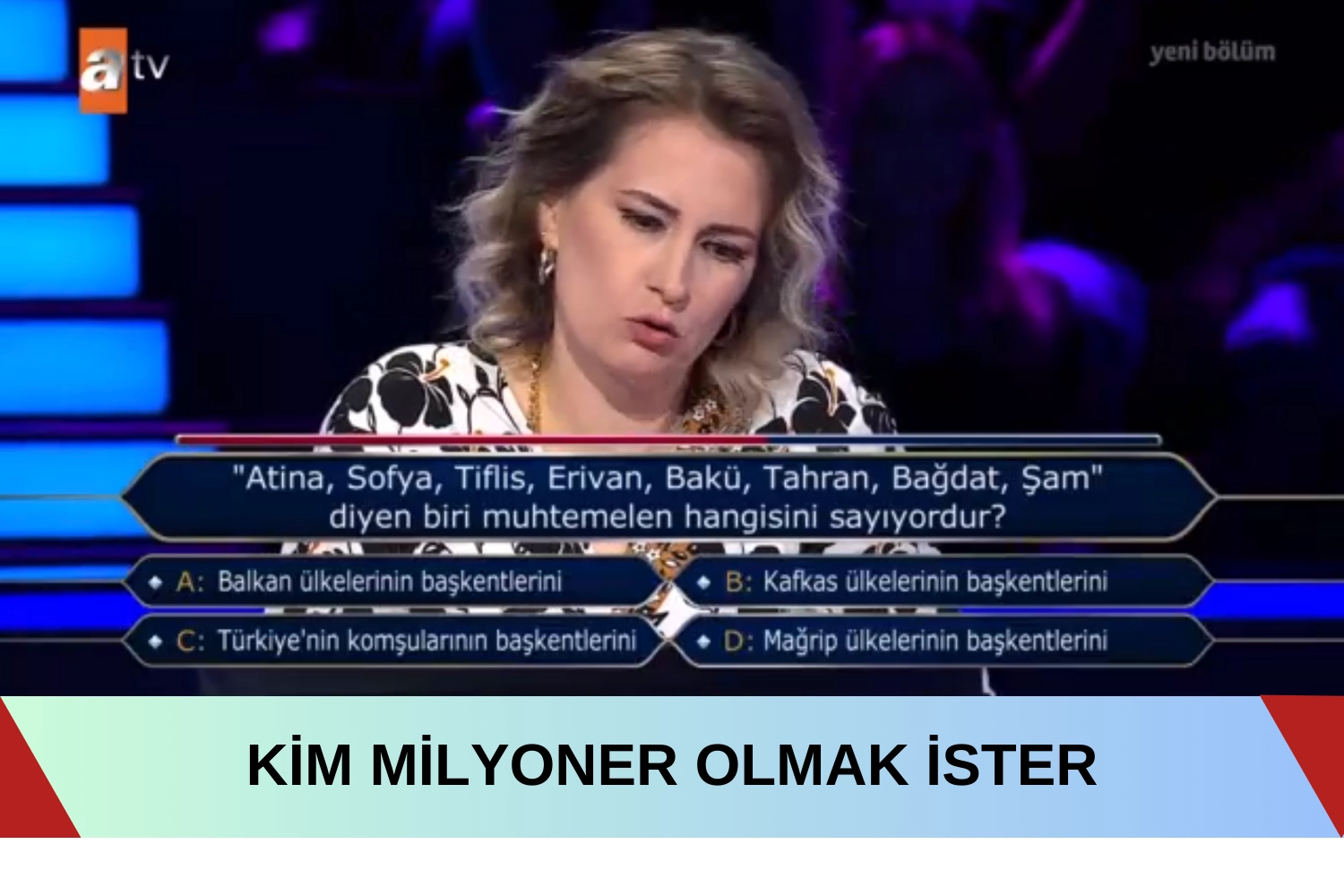 "Atina, Sofya, Tiflis, Erivan, Bakü, Tahran, Bağdat, Şam" diyen biri muhtemelen "C- Türkiye'nin komşularının başkentini" sayıyordur.