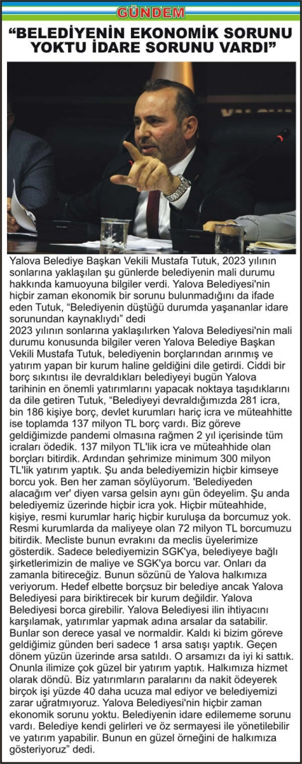 “BELEDİYENİN EKONOMİK SORUNU YOKTU İDARE SORUNU VARDI”