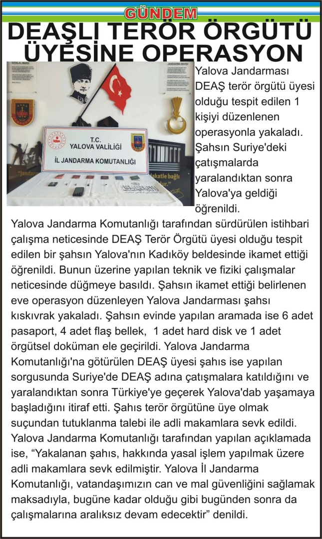 DEAŞLI TERÖR ÖRGÜTÜ ÜYESİNE OPERASYON