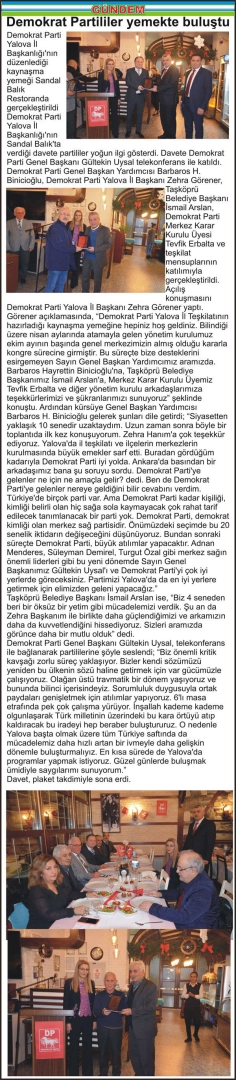 Demokrat Parti Yalova İl Başkanlığı’nın düzenlediği kaynaşma yemeği Sandal Balık Restoranda gerçekleştirildi