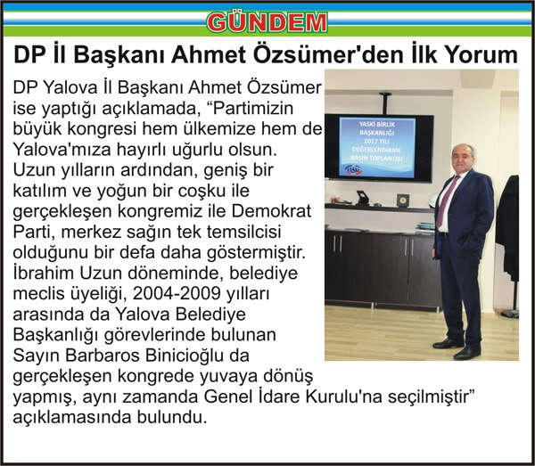 DP İl Başkanı Ahmet Özsümer’den İlk Yorum