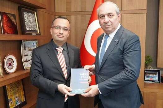 Yalova Üniversitesi İşletme Bölümü Öğretim Üyesi Prof.Dr. Ferhat Sayım YTSO ziyaretinde Yönetim Kurulu Başkanı Cemil Demiryürek ile yapay zekâ, yapay zekâ teknolojileri, işletmelerde dijital dönüşüm, algoritma oluşturma adımları ve sektörlerde yapay zekâ kullanımı gibi konularda görüşme gerçekleştirdi. Akabinde Prof. Dr. Ferhat Sayım kendi yazdığı “İşletmelerde ve Yönetimde Yapay Zekâ” isimli kitabı Demiryürek’e hediye etti.