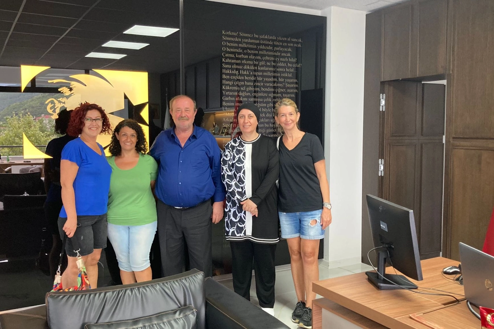 Esenköy Belediye Yeni Hizmet Binası’nın devreye girmesiyle birlikte Esenköy Belediye Başkanı Mehmet Temel’e bu kez hanımlardan ziyaret geldi. Esenköy Belediye Başkanı Mehmet Temel hanımların ziyaretini geri çevirmeyerek onları makamında ağırladı.