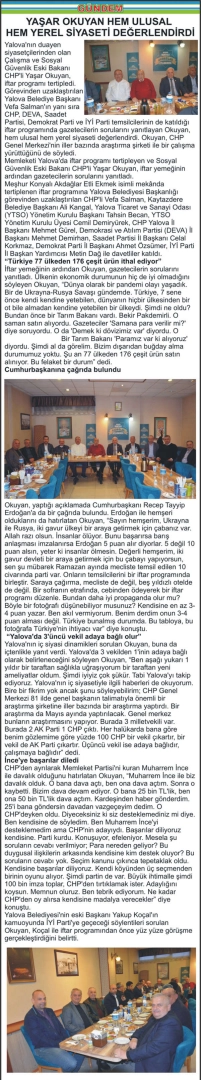 Yalova Belediyesi’nin eski Başkanı Yakup Koçal’ın kamuoyunda İYİ Parti’ye geçeceği söylentileri sorulan Okuyan, Koçal ile iftar programından önce yüz yüze görüşme gerçekleştirdiğini belirtti.