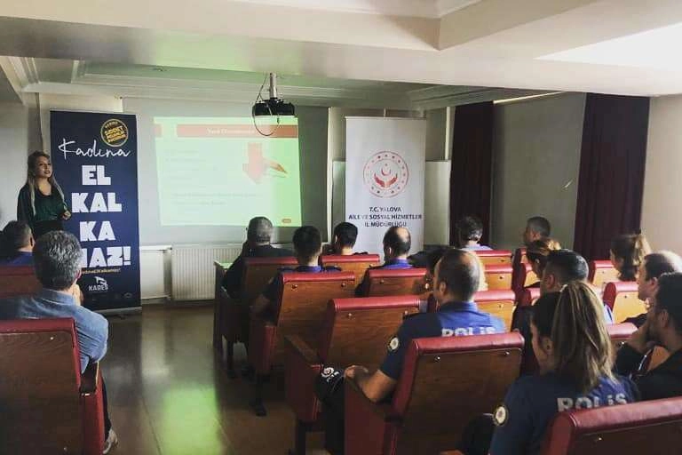 Yalova Aile ve Sosyal Hizmetler İl Müdürlüğü, 2023 Yılı Kadına Yönelik Şiddetle Mücadele Faaliyet Planı kapsamında bir eğitim düzenledi. Eğitime il ve ilçe emniyet müdürlüklerinde görevli kolluk personeli katıldı. Eğitimde Şiddet Önleme ve İzleme Merkezi (ŞÖNİM) Müdürlüğünden Cennet Ertürk sunum yaptı. Ertürk, aile içi ve kadına yönelik şiddetle mücadele kapsamında yürütülen iş ve işlemleri anlattı. Ertürk, KADES (Kadın Destek Uygulaması) ve Elektronik Kelepçe uygulamalarının yaygınlaştırılmasına ilişkin bilgi verdi. Ertürk, ayrıca şiddetle mücadelede erkek odaklı yürütülecek farkındalık çalışmalarını değerlendirdi. Eğitimde alkol ve madde bağımlılığı çerçevesinde Aile, Çalışma ve Sosyal Hizmetler Bakanlığı’nın 2021/5 sayılı genelgesi ve sorumlu kurumların yükümlülükleri hakkında da bilgilendirmede bulunuldu.