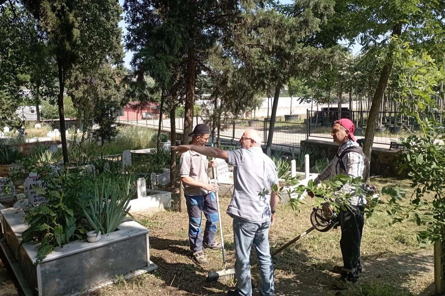 Kadıköy Beldesinde bulunan mezarlıklarda devam eden çevre düzenleme ve temizlik işlemlerini yerinde inceleyen Kadıköy Belediye Başkanı Mehmet Şahin, mezarlıkların beldeye yakışır bir görünümde olması ve vatandaşların rahat bir şekilde kabristan ziyaretlerini sağlayabilmeleri için gerçekleştirilen çalışmalar hakkında ekiplerden detaylı bilgi alarak bölgede sürdürülen faaliyetleri takip etti.