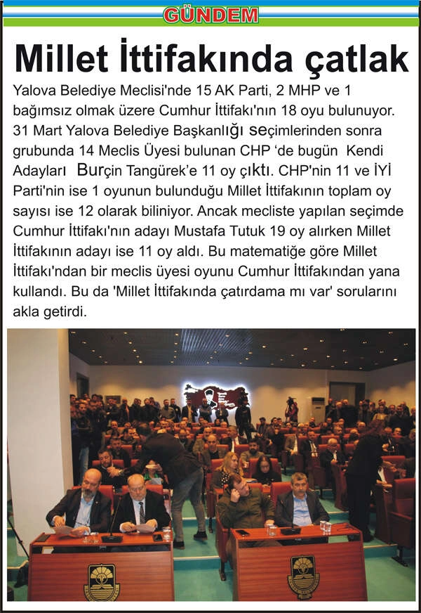 31 Mart Yalova Belediye Başkanlığı seçimlerinden sonra grubunda 14 Meclis Üyesi bulunan CHP ‘de bugün Kendi Adayları Burçin Tangürek’e 11 oy çıktı