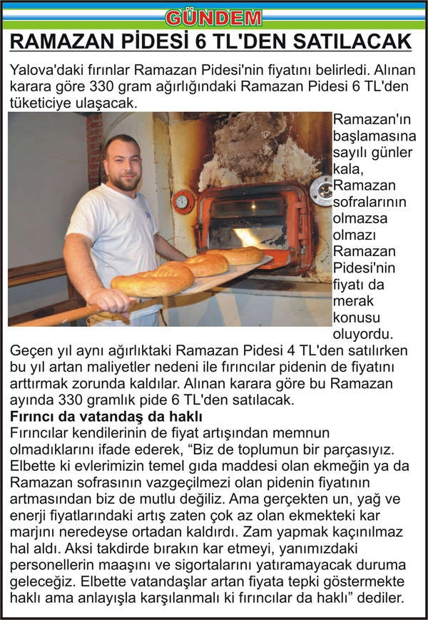 RAMAZAN PİDESİ 6 TL’DEN SATILACAK