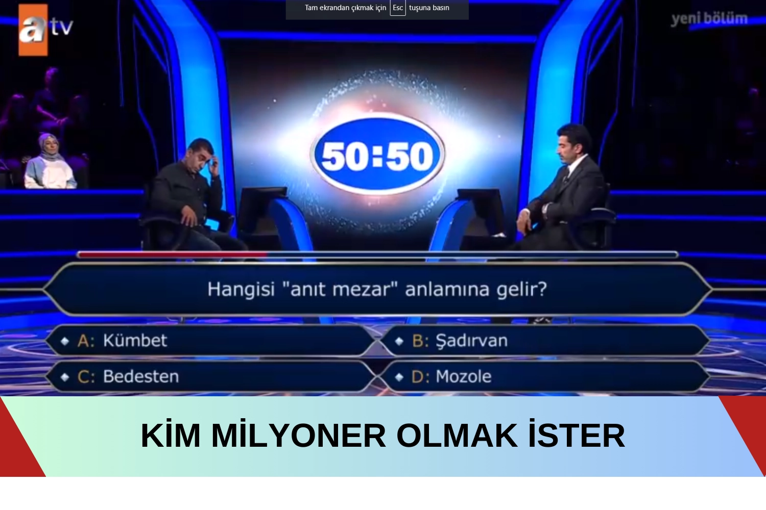 Kim milyoner olmak ister adlı yarışmada 100 bin lira değerinde ki merak edilen soru soruldu. İşte sorunun cevabı...