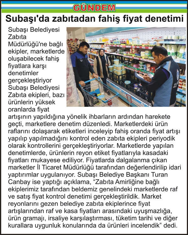 Subaşı’da zabıtadan fahiş fiyat denetimi