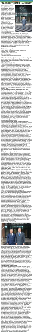 Yalova Ticaret ve Sanayi Odası (YTSO) Yönetim Kurulu Başkan Yardımcısı Kenan Engin, YTSO’nun 5 yıldızlı akredite bir oda olduğunu söyleyerek tekrar yönetimde söz sahibi olmak istediklerini kaydetti. Yalova Hayat’a dobra dobra açıklamalar yapan Engin, “Biz bir dönem daha adaylık istemişsek anlayışla karşılanması lazım. Yaptıklarımızın da alkışlanması gerekir. Bir maça çıkıp, gol atınca herkes seviniyor, alkışlıyor. Biz de bir maça çıkmışız, gol atmışız. Alkışlanmak hakkımız” dedi
