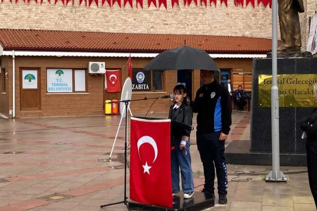 Törende ayrıca öğrencilerin hazırladığı şiirler de okundu. Termal Belediye Başkanı H. Sinan Acar ise ülkenin bağımsızlığı için canlarını feda eden tüm şehitleri rahmet ve minnetle anarak, “Başta Gazi Mustafa Kemal Atatürk olmak üzere tüm şehitlerimizi ve gazilerimizi saygı, sevgi ve minnetle anıyoruz.” diye konuştu.