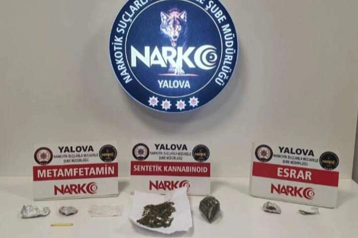 Emniyet Müdürlüğünden yapılan açıklamaya göre, ekipler tarafından çevre illerden temin ettiği uyuşturucu maddeler ile Yalova’da uyuşturucu madde ticareti yapacağı tespit edilen N.K. isimli şüphelinin içerisinde bulunduğu ticari araç takibe alındı. Yalova-Çınarcık yolu üzerinde seyir halindeyken şok müdahale ile durdurulan araçta yapılan aramada ses sistemi içerisinde saklı vaziyette özel olarak hazırlanmış 20 ayrı paket halinde toplam 107 gram metamfetamin maddesi bulundu. Ekipler tarafından genişletilen soruşturma ve çalışmalarda sokak düzeyinde uyuşturucu madde ticareti yaptıkları tespit edilen G.D., F.Y., T.H., A.S.H. isimli şüphelilerin yakalanmasına yönelik eş zamanlı operasyon düzenlendi. Adı geçen şüpheliler ikametgah ve araçlarında yakalanarak gözaltına alındı. Narkotik maddeler arama köpeği Zeytin eşliğinde gerçekleştirilen ikametgah ve araç aramalarında 55,19 gram sentetik kannabinoid maddesi, 38,15 gram metamfetamin maddesi, 5,98 gram esrar maddesi, 1 adet hassas terazi ele geçirildi.