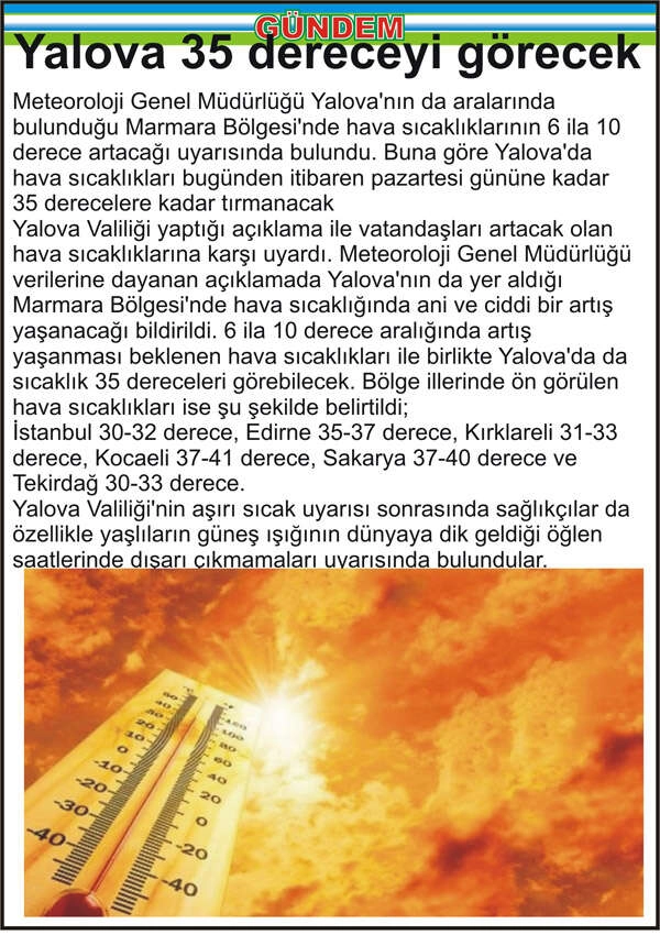 Yalova 35 dereceyi görecek