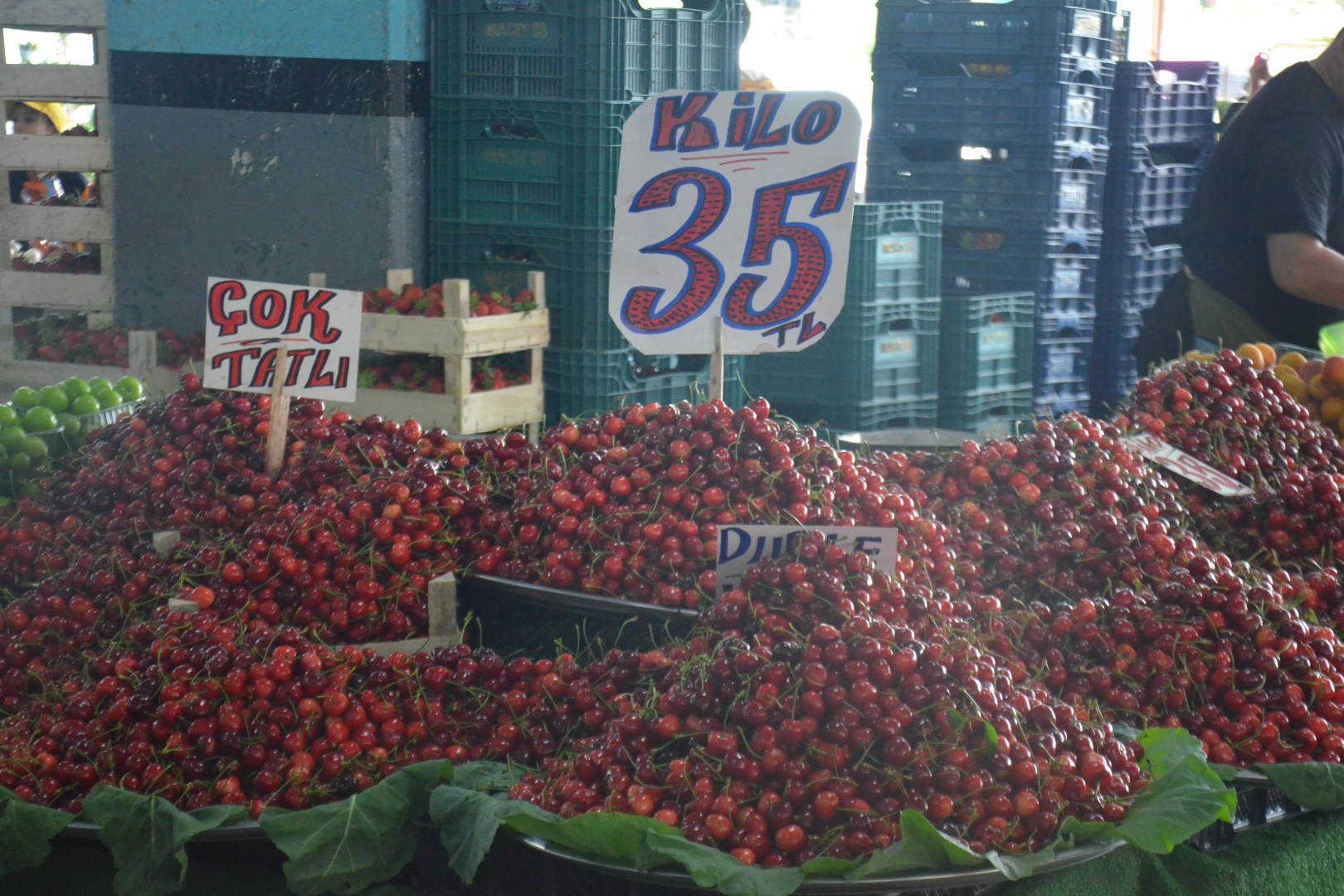 Yalova Kapalı Pazaryeri’ndeki tezgahlarda ürünlerin kilo fiyatları şu şekilde; limon 15 TL, muz 20 TL, çilek 30 TL, erik 30 TL, kiraz 35 TL, kayısı 30 TL, şeftali 35 TL, domates 25 TL, salatalık 17 TL, patlıcan 15, soğan 13 TL, patates 15 TL.