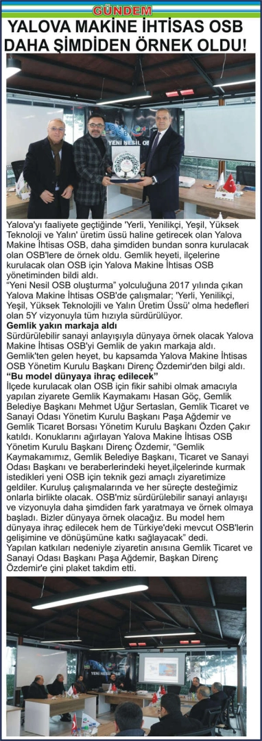 YALOVA MAKİNE İHTİSAS OSB DAHA ŞİMDİDEN ÖRNEK OLDU!