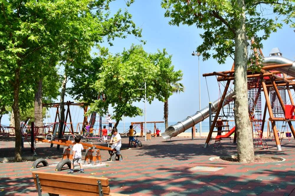 Yalova sahilinde aileleriyle birlikte parklarda oyun oynayan çocuklar renkli görüntüler oluşturdu. Yoğunluk tüm gün boyunca devam etti.
