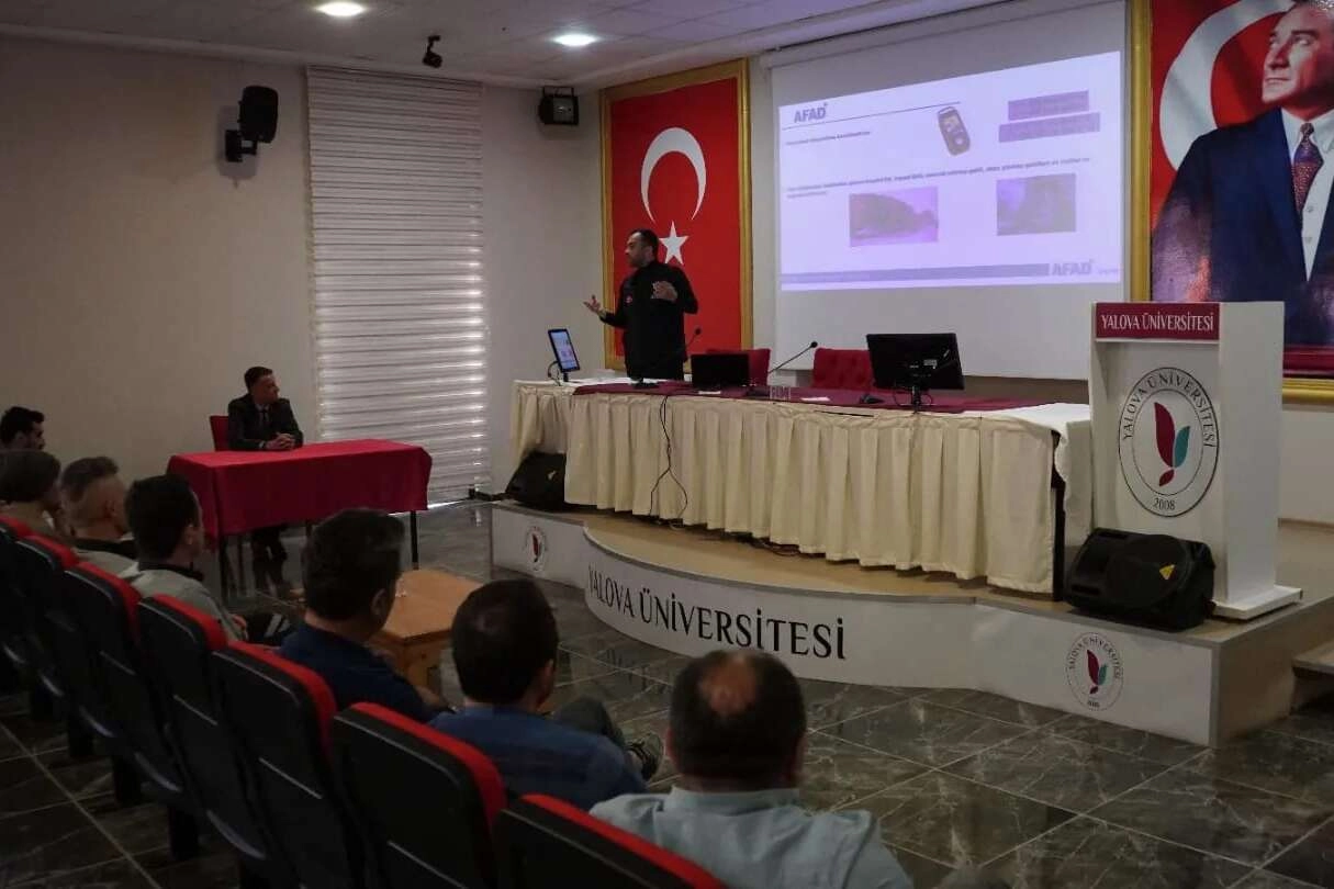 16 Mayıs tarihinde Yalova Üniversitesi Rektörlük Konferans Salonu’nda verilen teorik eğitimde; deprem anında yapılması gerekenler, afetzedeler ile iletişim, sahada nasıl hareket edileceği, enkazda çalışmanın zorlukları ve 6 Şubat Kahramanmaraş depreminden edinilen deneyimler gibi konular anlatıldı.