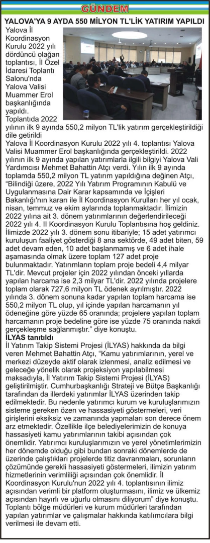 YALOVA'YA 9 AYDA 550 MİLYON TL'LİK YATIRIM YAPILDI