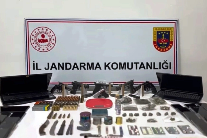 UYUŞTURUCU VE SİLAH YAKALANDIOperasyon kapsamında şüphelilerin ev, işyeri ve eklentilerinde yapılan aramalarda, 8 tabanca, 71 telefon ve tablet, çeşitli miktarlarda uyuşturucu madde ve çok sayıda kesici/delici alet ele geçirildi.