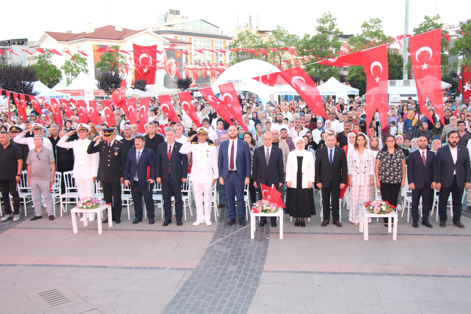 Meydanda Cumhurbaşkanı Recep Tayyip Erdoğan’ın halka seslenişi sinevizyondan izlendi. Saygı duruşunda bulunulması ve İstiklal Marşı’nın okunmasının ardından Kuran’ı Kerim tilaveti gerçekleştirildi. Duayı ise Yalova Müftüsü İlyas Yılmaztürk yaptırdı. Ülke genelinde eş zamanlı olarak gerçekleştirilen “Sancak Koşusu” da Deprem Anıtından başlayarak 15 Temmuz Demokrasi ve Cumhuriyet Meydanı’nda son buldu. Sporcular taşıdıkları sancağı öperek Yalova Valisi Muammer Erol’a teslim ettiler. 15 Temmuz Demokrasi ve Milli Birlik Günü dolayısıyla il genelinde gerçekleştirilen resim, şiir ve mektup yarışmalarında dereceye giren öğrencilerin ödüllerini de Vali Erol takdim etti.