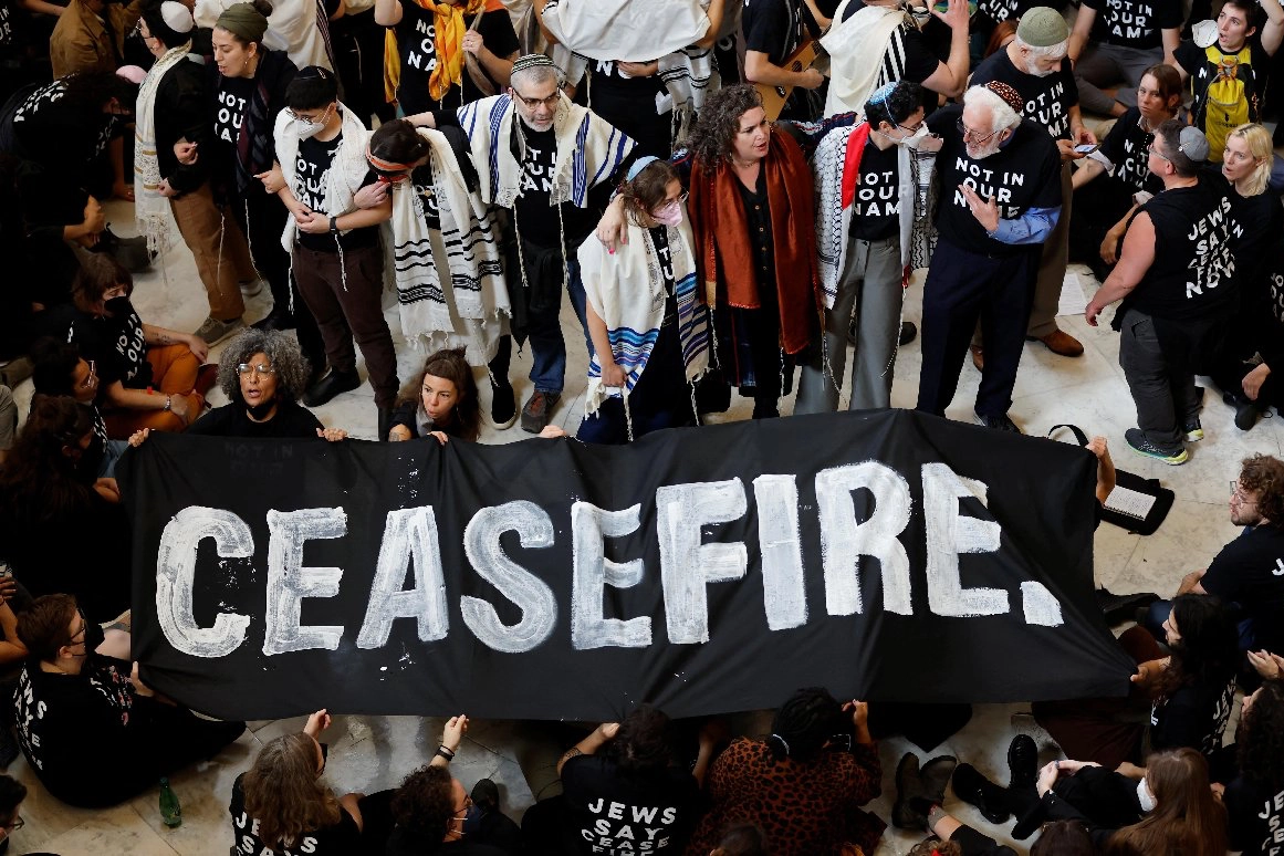 Amerika Birleşik Devletleri’nde bulunan Yahudi vatandaşlar İsrail’in Gazze’ye karşı işlediği insanlık suçunu protesto etmek için sokaklara çıktı. ABD Kongresi’nin bulunduğu Capitol Hill binasına giren bir grup Yahudi oturma eylemi düzenledi.