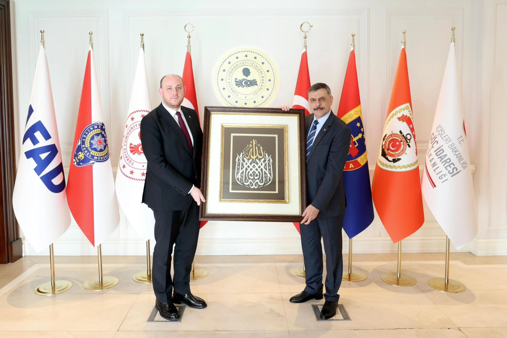 AK Parti Genel Başkan Yardımcısı, Teşkilat Başkanı ve Yalova Milletvekili Ahmet Büyükgümüş, İçişleri Bakanı Mustafa Çiftçi’ye hayırlı olsun ziyaretinde bulundu. Ziyaretinde İçişleri Bakanı Mustafa Çiftçi’ye hayırlı olsun dileklerini ileten AK Parti Genel Başkan Yardımcısı, Teşkilat Başkanı ve Yalova Milletvekili Ahmet Büyükgümüş bir de tablo hediye etti.