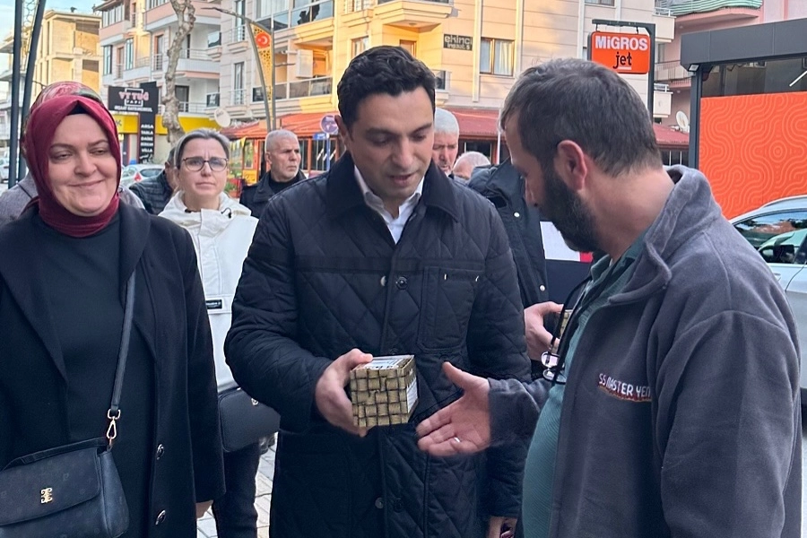 İlçe Başkanı Milhan Altınok önderliğinde gerçekleşen ziyaretlerde, teşkilat üyeleri esnafların kandilini kutlayarak kandil simidi ikram etti.