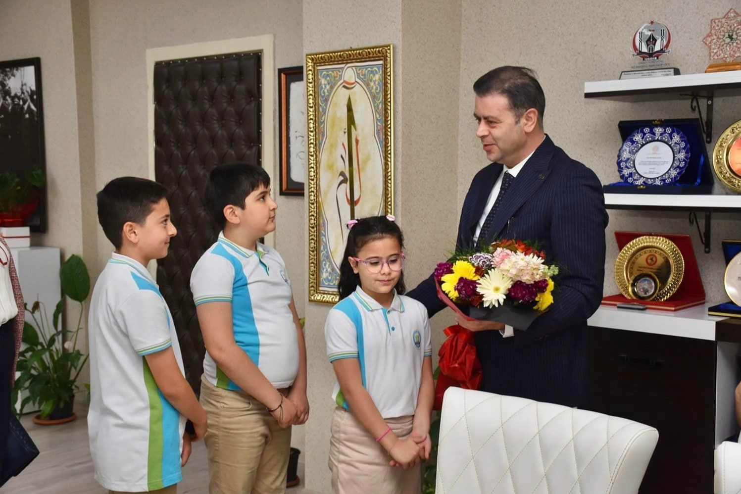 Yalova İl Milli Eğitim Müdürü Halil İbrahim Akmeşe, 23 Nisan Ulusal Egemenlik ve Çocuk Bayramı kapsamında, Yalova İlkokulu öğrencilerini makamında konuk etti. Gerçekleştirilen ziyarette minik öğrenciler; Hifa Oruç, Liya Kumsal Maviş, Çınar Gürbüz ve Alper Kaan Dinler, okul müdürleri ve öğretmenleriyle birlikte İl Milli Eğitim Müdürlüğü’nde Akmeşe tarafından karşılandı.