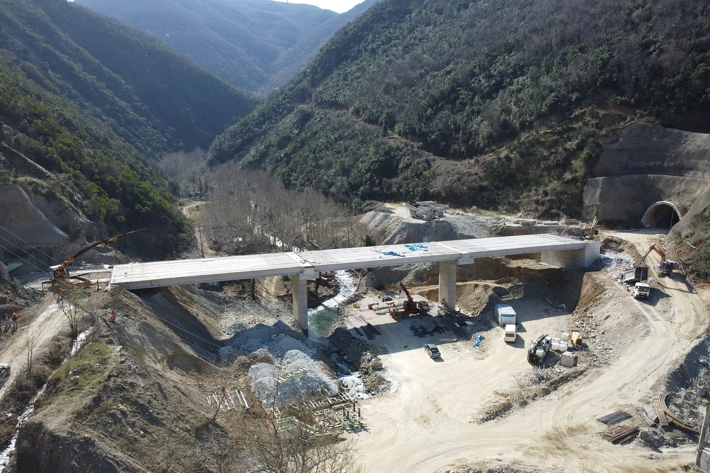 Tünele ait ortaya çıkan viyadük ayaklarının ardından bir kısım beton kirişleri yerleştirilmeye başlandı.