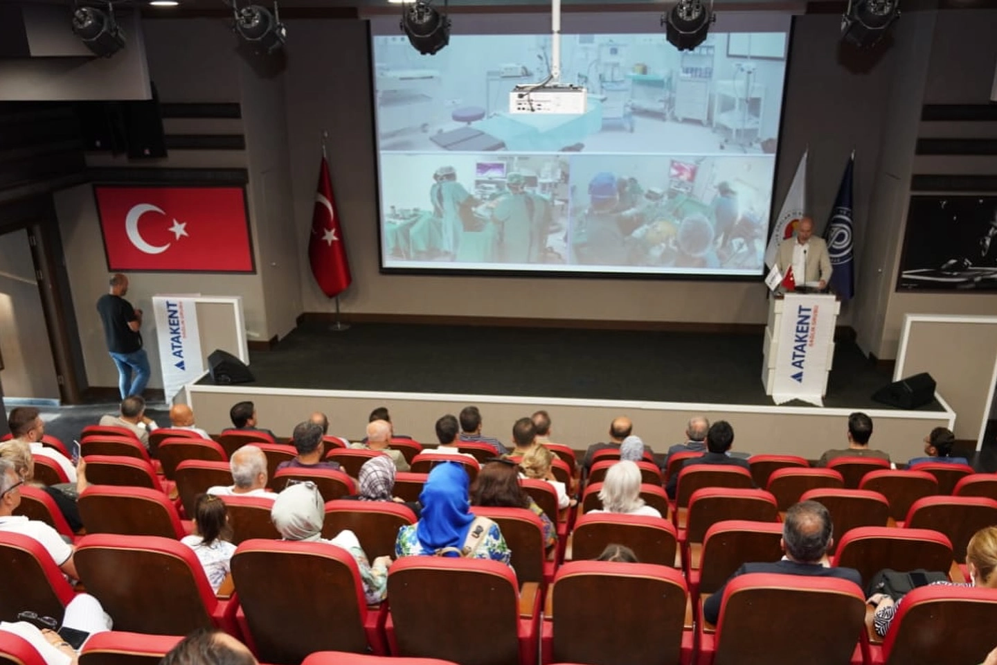 Konuşmalardan sonra Özel Atakent Hastanesi İç Hastalıkları Uzmanı Dr. Muaz Bayram Evde Sağlık Hizmetleri hakkında bilgi verdi. Evde Bakım Hizmetleri biriminin profesyonel kadrosuyla 7 gün 24 saat esasına göre hizmet verdiğini aktaran Bayram, “Evde Bakım Hizmetlerimiz uzman hekim veya pretisyen hekim tarafından muayene, PEG bakımı ve değişimi, EKG, IM/IV Enjeksiyon, serum takılması, nazogastrik sonda takılması ve değişimi, mesane sondası takılması ve değişimi, büyük/orta yara pansumanı, trakeostomi bakımı değişimi, katater bakımları, yatak içi vücut temizliği, lohusa anne ve bebek bakımı ve bebek banyosudur.” şeklinde bilgi verdi.