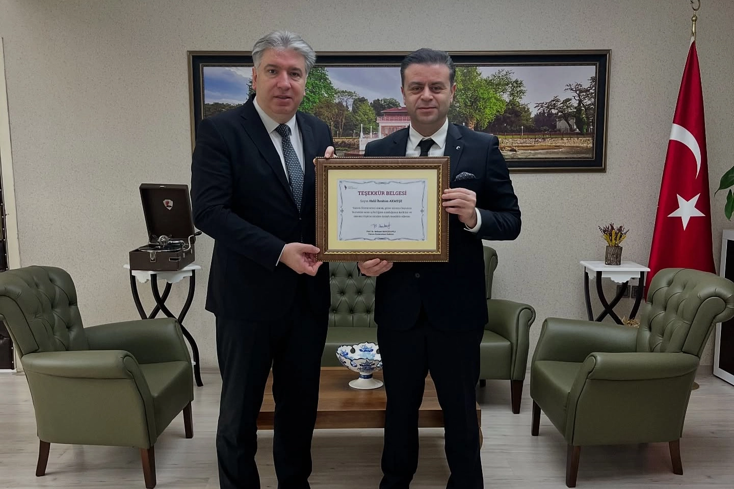 "EĞİTİMDE TAM BİR UYUM SERGİLENDİ"Rektör Bahçekapılı, Akmeşe'ye teşekkür belgesi takdim ederek, "Yalova'da görev yaptığınız süre boyunca üniversitemiz ve Millî Eğitim Müdürlüğü arasında örnek bir iş birliği sağlandı. Bu katkılarınız için teşekkür eder, Rize'deki görevinizde başarılar dileriz" dedi.