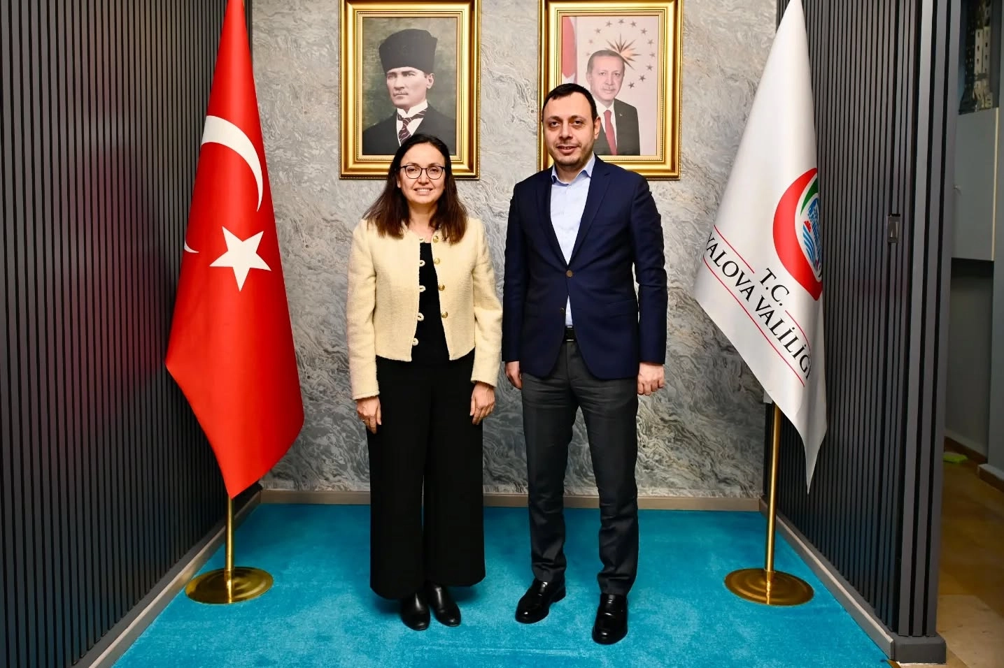 27. Dönem AK Parti İstanbul Milletvekili, Çevre, Şehircilik ve İklim Değişikliği Bakan Danışmanı Eyüp Özsoy, Yalova Valisi Dr. Hülya Kaya’yı makamında ziyaret etti. Ziyarette, Yalova’daki kentsel dönüşüm projeleri ve çevre düzenlemeleri ele alınırken, Vali Kaya kentte yürütülen çalışmalar hakkında bilgi verdi. Bakanlık tarafından sürdürülen yatırımlara ilişkin değerlendirmelerde bulunan Kaya, Yalova’nın ihtiyaç duyduğu yeni projeler ve çözüm bekleyen konular üzerine Özsoy ile istişarelerde bulundu. Görüşmenin ardından Vali Kaya, nazik ziyaretinden dolayı Eyüp Özsoy’a teşekkür etti.
