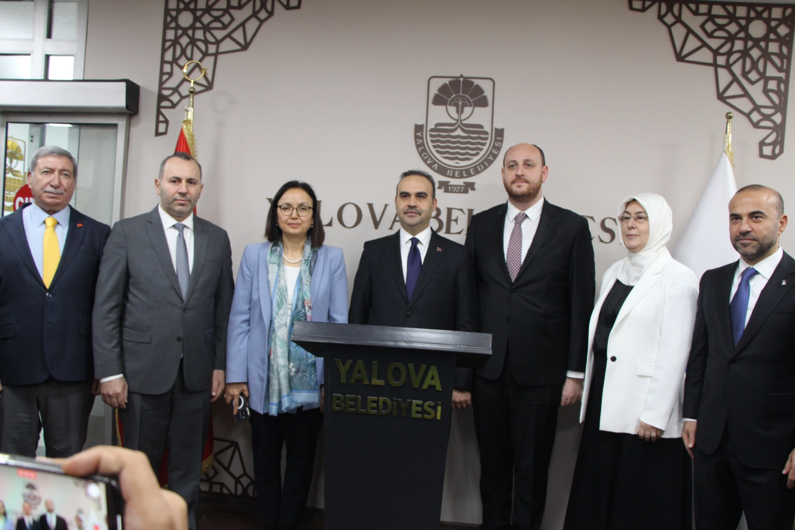 Sanayi ve Teknoloji Bakanı Mehmet Fatih Kacır, Yalova programına Yalova Valiliği’ni ziyaret ederek başladı. Burada Yalova Valisi Dr. Hülya Kaya, Yalova Belediye Başkanı Mustafa Tutuk, AK Parti Yalova Milletvekilleri Ahmet Büyükgümüş ve Meliha Akyol tarafından çiçeklerle karşılanan Bakan Kacır, valiliğin hatıra defterini de imzaladı. Bakan Kacır ardından Vali Kaya’nın makamına geçti. Ziyaretin anısına Bakan Kacır’a hediyelerini sunan Vali Kaya ardından ildeki çalışmalarla ilgili bir brifing sundu. Bakan Kacır, valilik çıkışında ise basına yönelik açıklamalarda bulundu. Bakanların İstanbul’da seçim çalışması yapmasını eleştiren CHP’li Ekrem İmamoğlu’na Yalova’dan cevap veren Bakan Kacır, “Sadece İstanbul’da değil, Türkiye’nin her yerinde, sadece seçim döneminde değil her daim gayretlerimizi sürdürüyoruz.