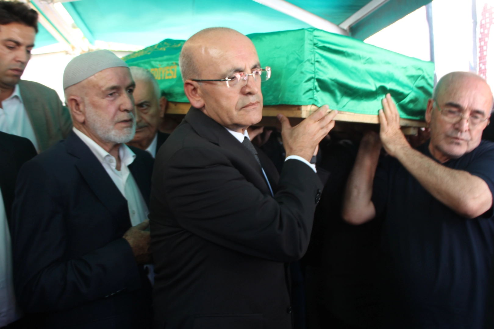 Namazın ardından Bakan Şimşek, abisinin tabutunu omuzlayarak cenaze aracına kadar taşıdı.
