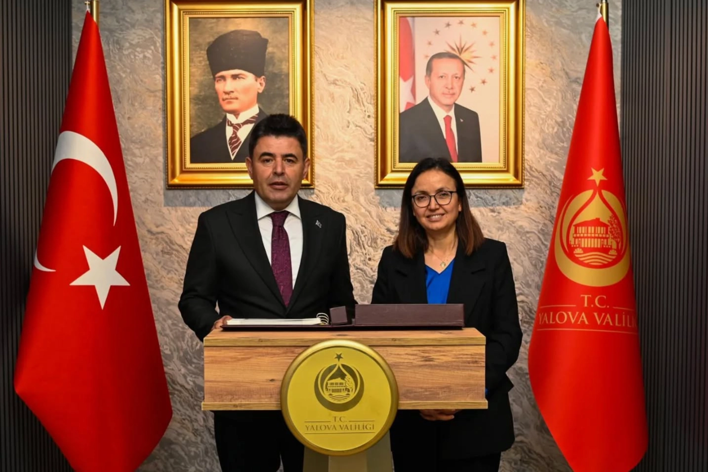 Ulaştırma ve Altyapı Bakan Yardımcısı Osman Boyraz, Yalova'ya gerçekleştirdiği ziyaret kapsamında Vali Dr. Hülya Kaya'yı makamında ziyaret etti. Valilik binasına gelişinde Vali Kaya tarafından karşılanan Bakan Yardımcısı, hatıra defterini imzaladıktan sonra Vali Kaya’dan bilgiler aldı.Görüşmede Vali Kaya, Bakan Yardımcısı Boyraz'a: devam eden altyapı projeleri, acil müdahale gerektiren ulaşım sorunları hakkında kapsamlı bilgiler aktardı.