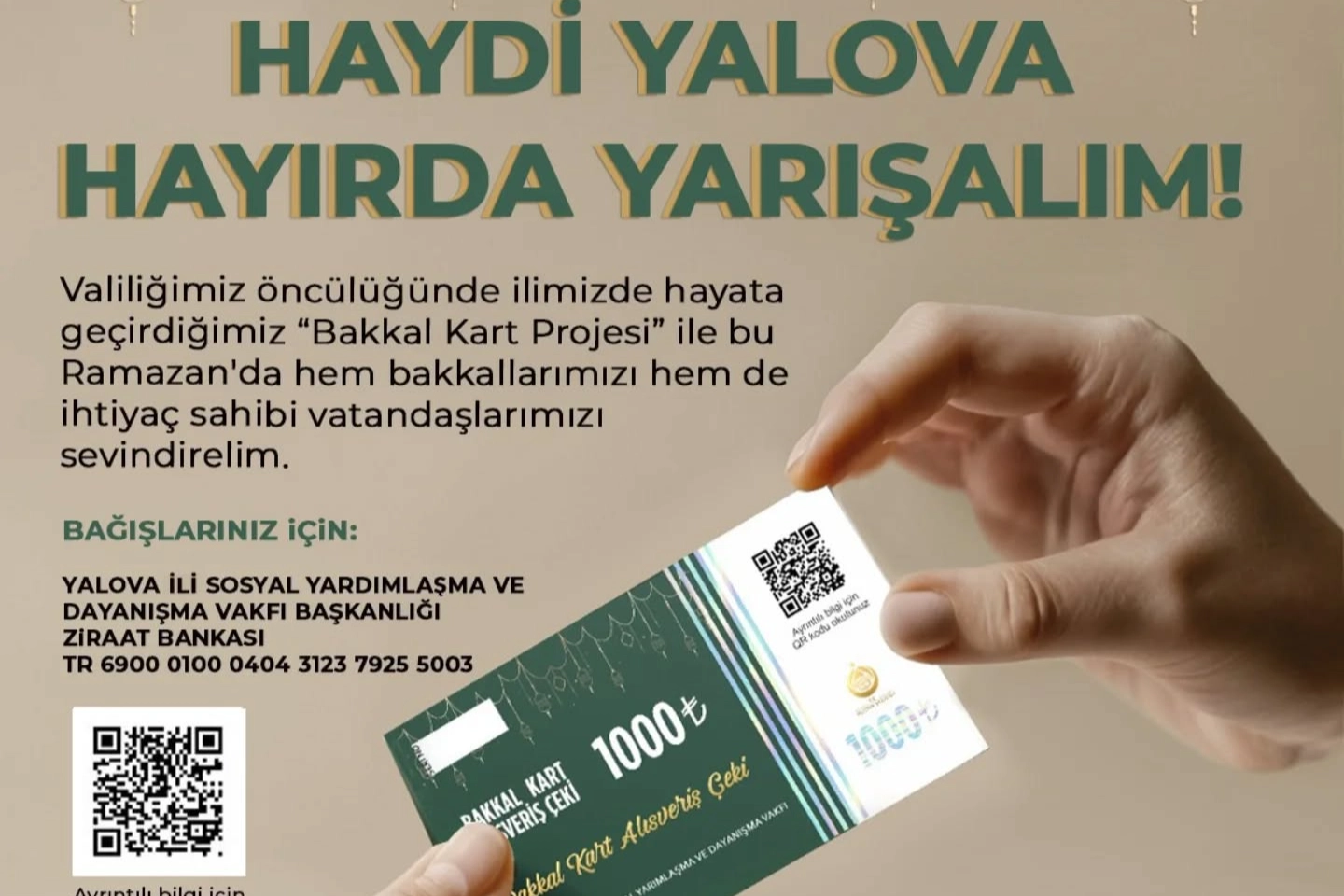 Yalova Valiliği’nin himayesinde Sosyal Yardımlaşma ve Dayanışma Vakfı Başkanlığı, Yalova Esnaf ve Sanatkârlar Odaları Birliği ile Yalova Bakkallar Büfeciler ve Tekel Bayiileri Esnaf Odası koordinasyonuyla gerçekleştirilecek olan Bakkal Kart Alışveriş Çeki Projesinin protokolü imzalandı. Atılan imzaların ardından start alan proje tüm hızıyla sürüyor. Yalova’da birçok hayırsever projeye destek olmak için bir biriyle yarışıyor.