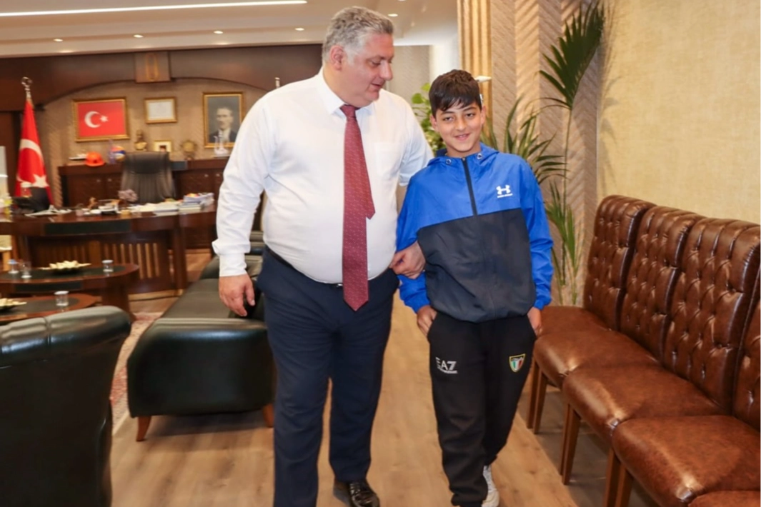 Yalova Belediye Başkanı Mehmet Gürel, daha önce buluşma sözü verdiği Rahmi Tokay Ortaokulu 7. sınıf öğrencisi Poyraz’ı belediye makamında misafir etti.