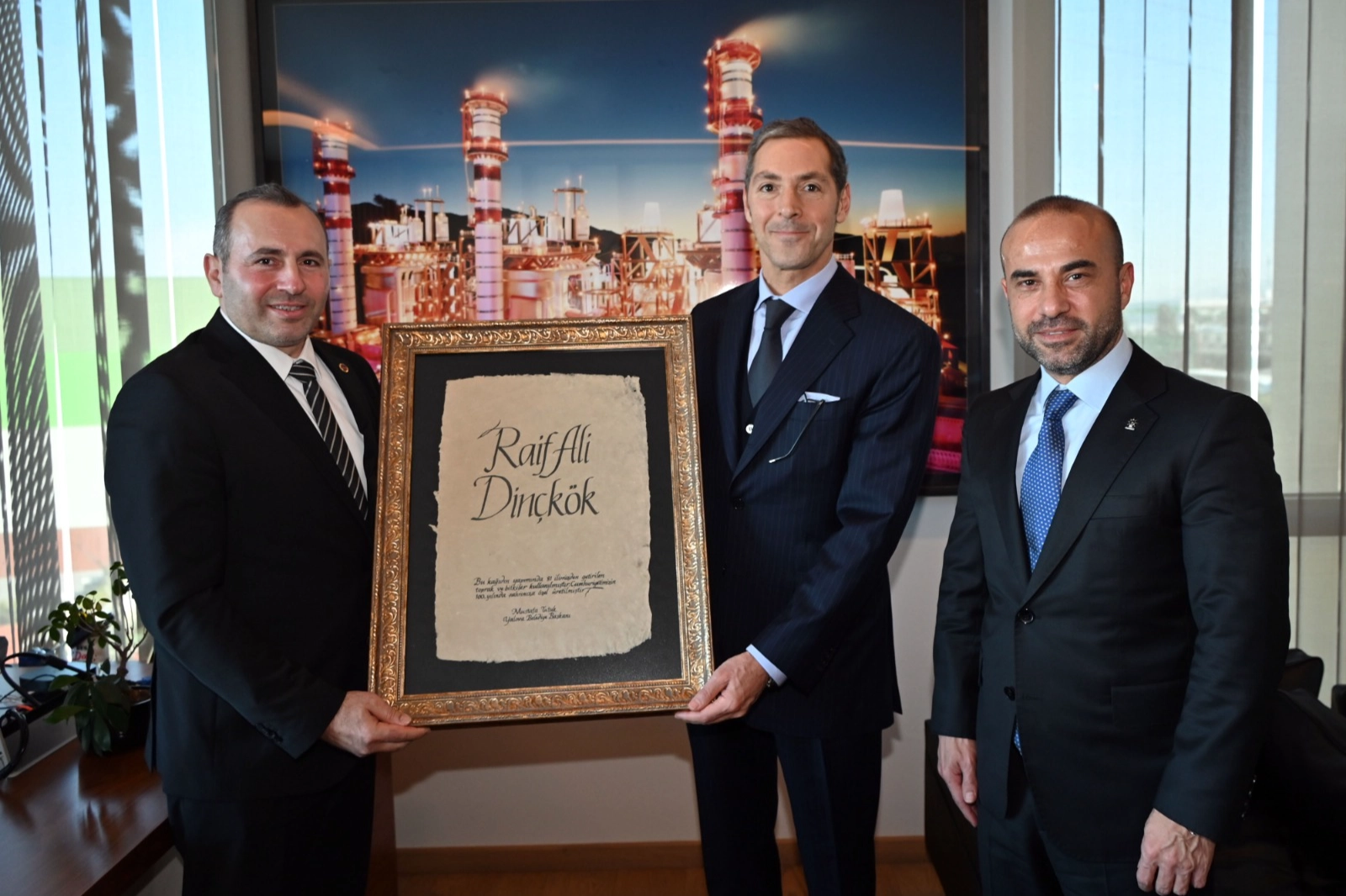 Görüşme sonrasında Başkan Tutuk, Yönetim Kurulu Başkanı Dinçkök’e, Yalova Aronyası ve özel olarak üretilen Yalova Kağıdı’na isminin hat sanatı ile yazdığı tabloyu hediye etti.
