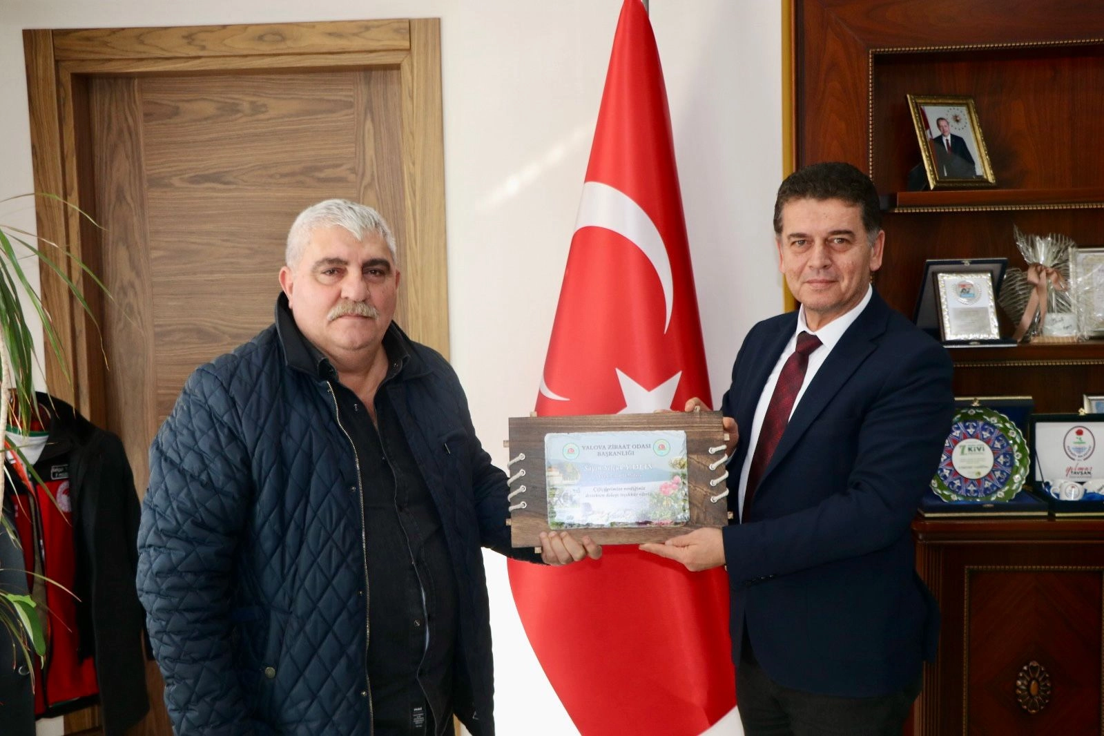 Yalova Ziraat Odası Başkanı Şaban Beşli, Yalova Tarım ve Orman İl Müdürü Selçuk Yaman’ı makamında ziyaret ederek il genelinde gerçekleştirilen tarımsal projeler ve çiftçilerin taleplerini görüştü. Beşli, Yalova’da tarımsal üretimin artırılması adına yürütülen projelerde İl Tarım ve Orman Müdürlüğü’nün önemli bir rol oynadığını belirterek, bu katkılardan dolayı Yaman’a çiftçiler adına teşekkür plaketi sundu.