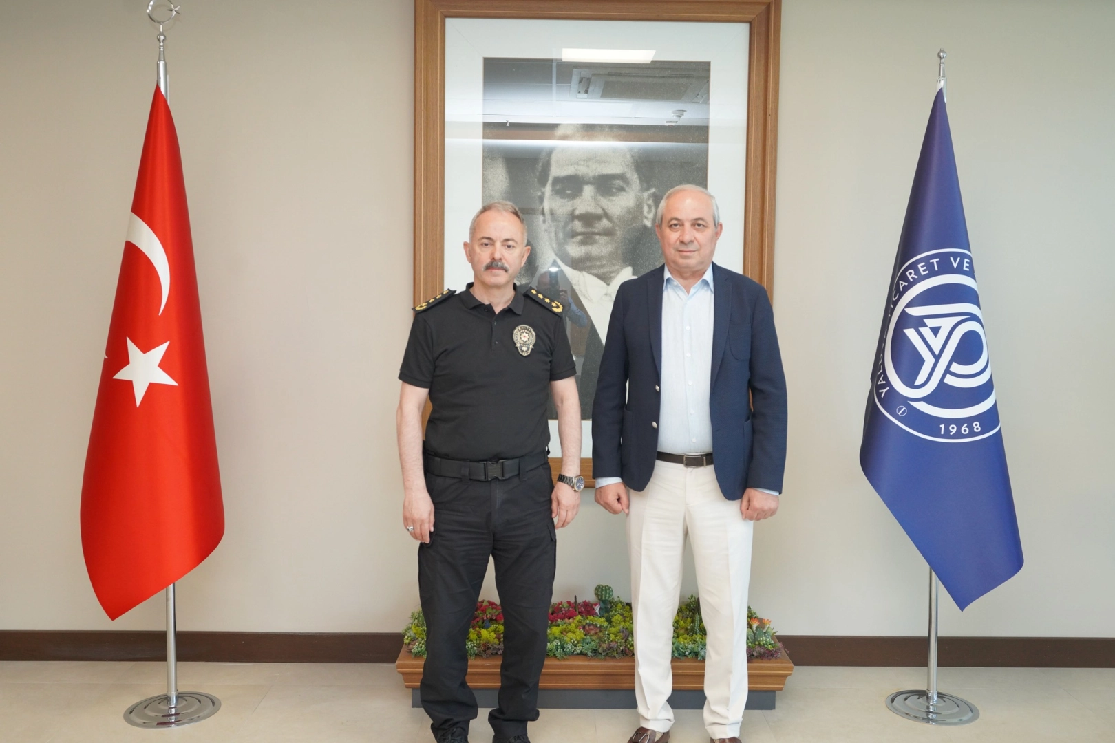 Yalova İl Emniyet Müdürü Ümit Bitirik, iadeyi ziyaret kapsamında Yalova Ticaret ve Sanayi Odası (YTSO) yöneticileriyle bir araya geldi. Ziyarette YTSO Başkanı Cemil Demiryürek, Yönetim Kurulu Üyesi Murat Yürektürk, Meclis Üyesi Hakan Gençer ve Genel Sekreter Taner Eriş hazır bulundu. Yaklaşık bir saat süren görüşmede ticari faaliyetlerin güvenliği, iş yeri hırsızlıklarına karşı alınacak önlemler, esnaf ve emniyet iletişiminin güçlendirilmesi gibi konular ele alındı.