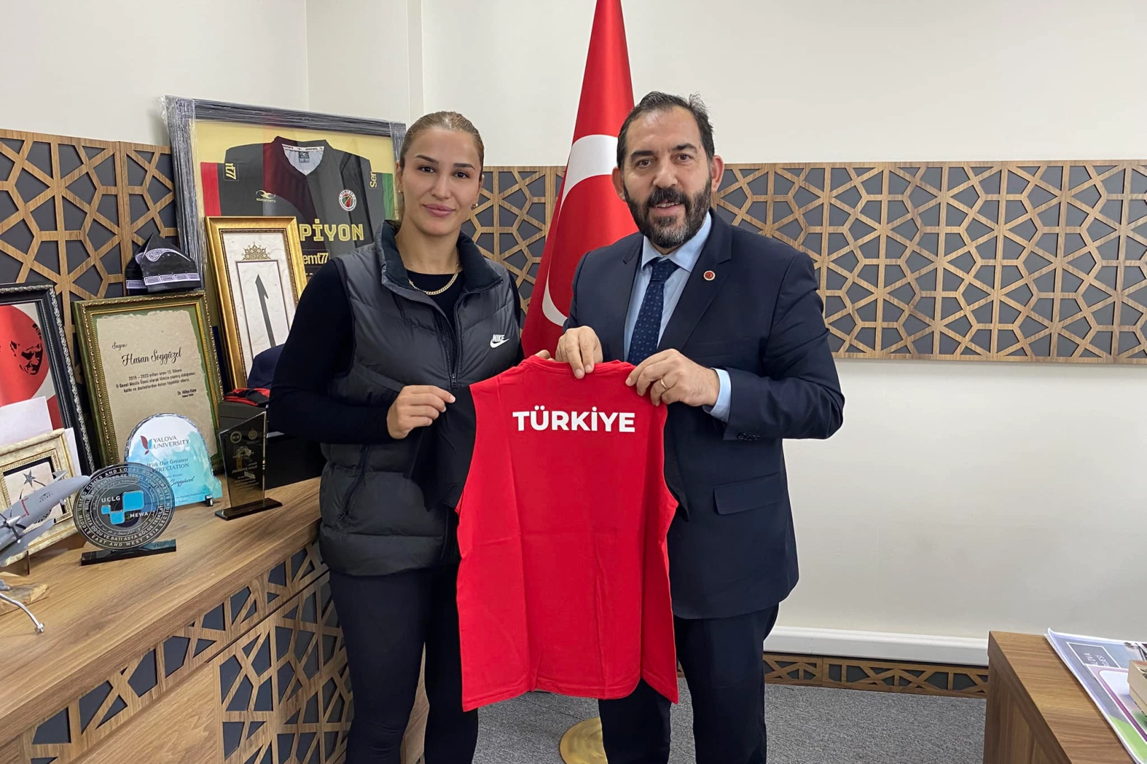 Buse Tosun Çavuşoğlu da, Yalova adına güreştiği dönemlerde Hasan Soygüzel'in kendisine verdiği desteğin çok önemli olduğunu ifade ederek, "Başkanımız her zaman yanımda oldu, bu nedenle kendisine teşekkür ediyorum” diyerek ona forma hediye etti. Ziyaret sırasında spor ve Yalova'nın spora verdiği destekler üzerine sohbet eden ikili, sporda geleceğe yönelik planları da değerlendirdi.
