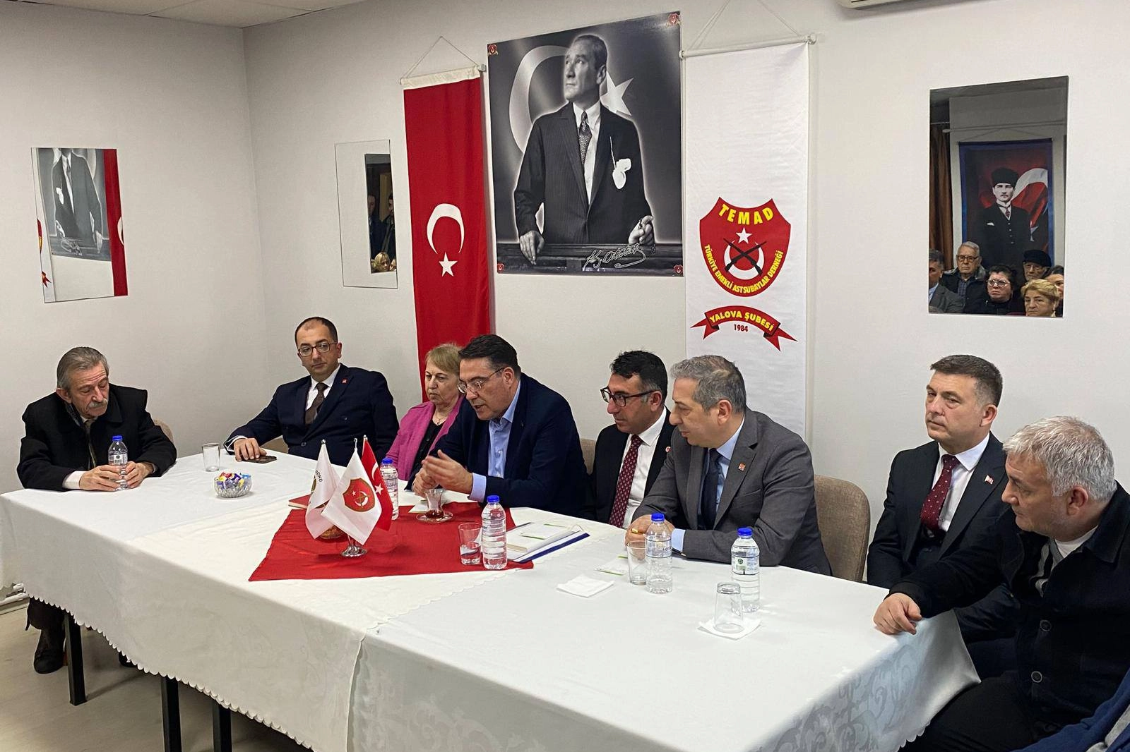 GÖRÜŞ ALIŞVERİŞİNDE BULUNDULARZiyaret sonrasında TEMAD’dan yapılan açıklamada “CHP Genel Başkan Yardımcısı E. Tümamiral Yankı Bağcıoğlu, CHP Yalova İl Başkanı Erdem Doğancı ve İl Teşkilatı Derneğimizi ziyaret ettiler. Ziyarette karşılıklı görüş alışverişinde bulunuldu. TEMAD Yalova İl Başkanımız Erdoğan Yıldız tarafından camiamızın özlük haklarının iyileştirilmesi ile ilgili taleplerimiz ve anı plaketi takdim edildi. Nazik ziyaretlerinden dolayı CHP Genel Başkan Yardımcısı Yankı Bağcıoğlu'na, İl Başkanı Erdem Doğancı ve teşkilatına teşekkür ediyoruz” sözleri sarf edildi.