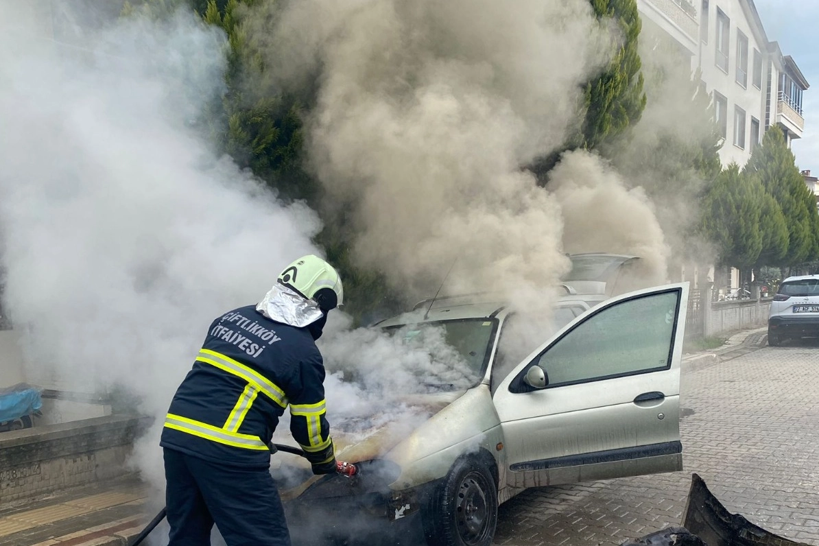 Siteler Mahallesi’ndeki Çimen Sokak'ta park halindeki bir araçta yangın çıktığı ihbarını alan itfaiye ekipleri, olay yerine hızla intikal ederek yangına müdahale etti.