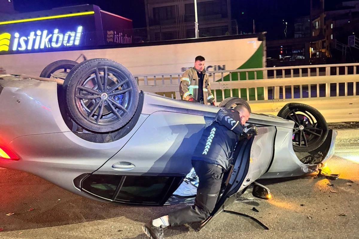 Savrulan otomobil takla atarak üst geçidin üzerinde ters döndü. Kazayı gören diğer sürücüler 112 Acil Çağrı Merkezine ihbarda bulundu.