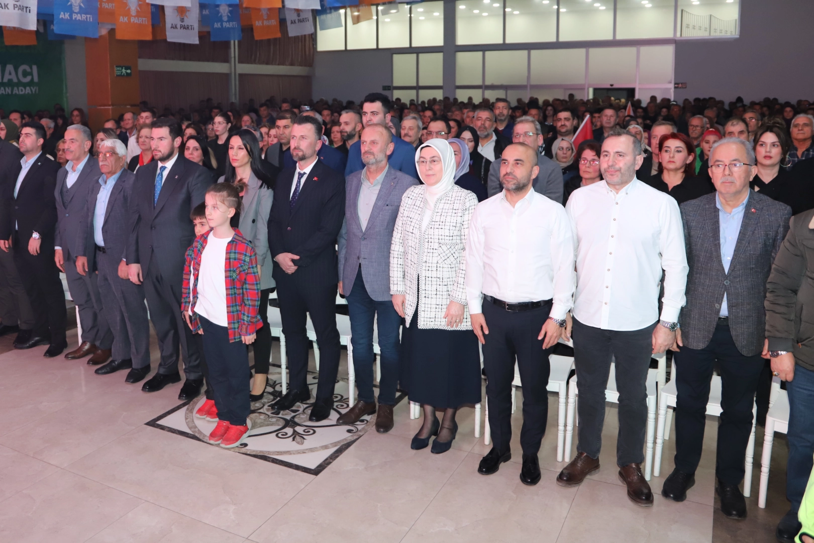 Gençlik Merkezi, Kadın ve Aile Merkezi, kentsel dönüşüm, yeni itfaiye binası, kreş ve anaokulu, amatör balıkçı barınağı, köprülü kavşak proje görsellerini de paylaşan Başkan Adayı Hacı, kapalı spor salonu ve stadyum projesi ile de gençlerden yoğun tezahürat aldı.