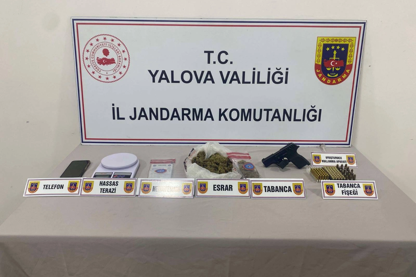 Alınan bilginin değerlendirilmesi üzerine 15 Ağustos 2025 tarihinde Çiftlikköy ilçesinde E.K. adlı şahsın evinde yapılan arama sonucunda 78 gram esrar, 3 gram metamfetamin, 1 adet uyuşturucu kullanma aparatı, 58 kök kenevir bitkisi, 1 adet hassas terazi, 1 adet cep telefonu, 1 adet tabanca ve 105 adet tabanca fişeği ele geçirildi. Yine aynı gün Armutlu ilçesinde E.A. adlı şahsa ait ağılda yapılan arama sonucunda bin 370 gram kubar esrar, 4 kök kenevir bitkisi ve 1 adet esrar öğütme aparatı ele geçirildi. Yasal işlemlerin ardından adli makamlara sevk edilen E.K. ve E.A. adlı şüpheliler tutuklandı.